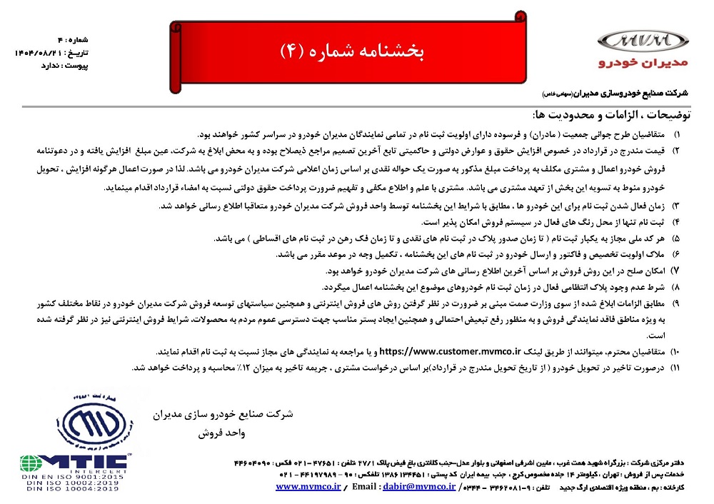 در این مرحله از فروش، قیمتها بهصورت قطعی تعیین شده و امکان ثبتنام از طریق سامانه فروش اینترنتی امویام یا با مراجعه به نمایندگیهای مجاز این شرکت فراهم است.