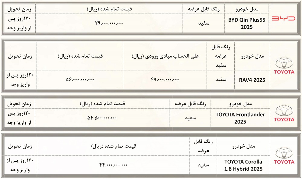 ثبت نام خودروهای وارداتی نگین تندیس – بهمن 1404