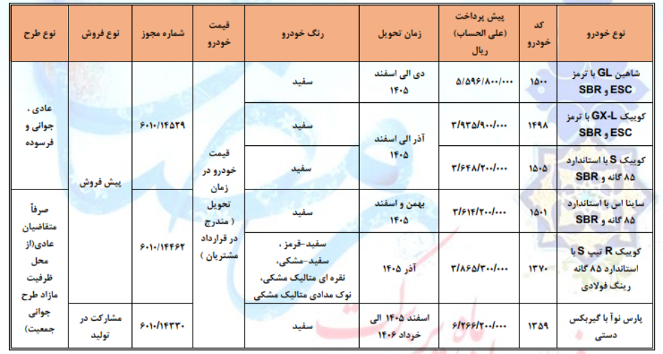 شرکت سایپا شرایط پیشفروش عادی و مشارکت در تولید برخی از محصولات سایپا و پارسخودرو را اعلام کرد.